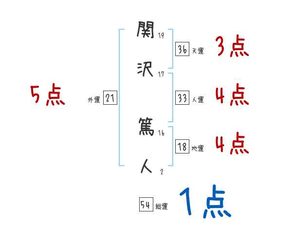 関沢篤人さんの画数の鑑定結果