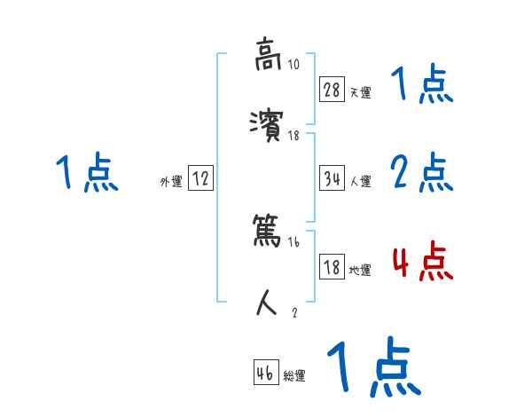 高濱篤人さんの画数の鑑定結果