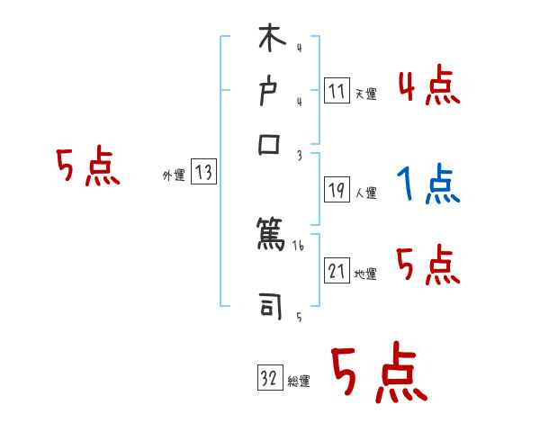 木戸口篤司さんの画数の鑑定結果