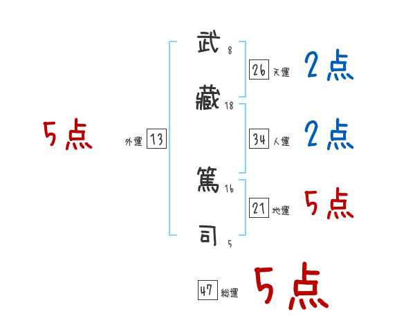武藏篤司さんの画数の鑑定結果