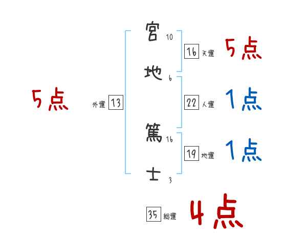 宮地篤士さんの画数の鑑定結果