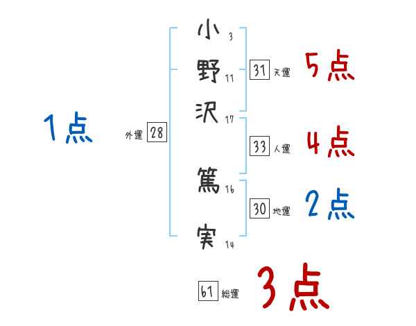 小野沢篤実さんの画数の鑑定結果