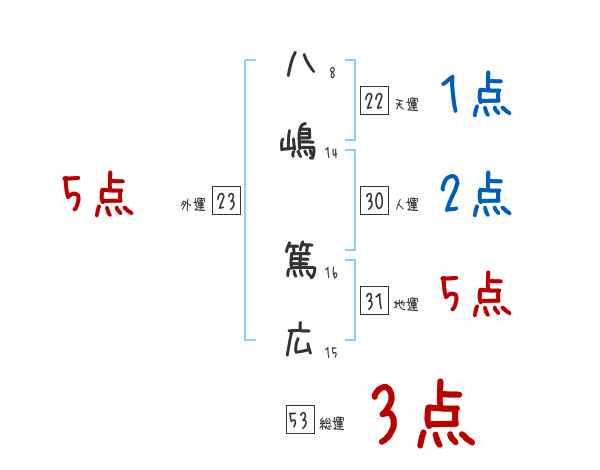 八嶋篤広さんの画数の鑑定結果