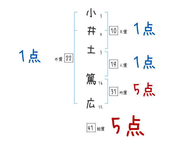 外運![]() | 小井土篤広さんの外運は22画の1つ星!努力することが苦手ないっぽう手先が器用。芸術性にも優れる。 生活面を象徴する運勢です。外部から受ける影響力を表し、結婚運、家庭運や職場、環境への順応性を表します。 |