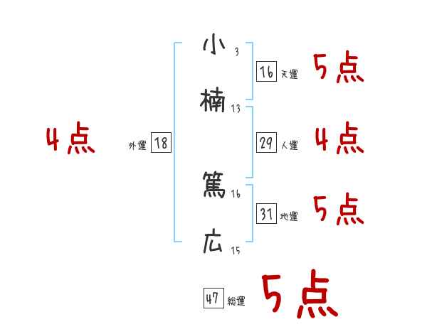 小楠篤広さんの画数の鑑定結果