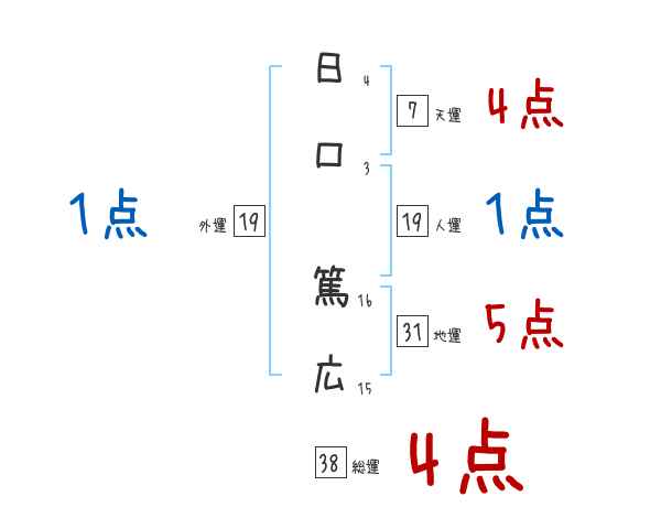 日口篤広さんの画数の鑑定結果