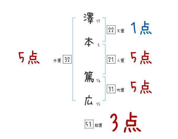 澤本篤広さんの画数の鑑定結果