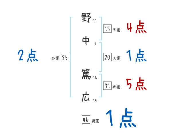野中篤広さんの画数の鑑定結果
