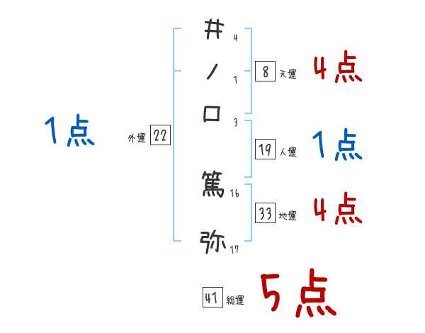 外運![]() | 井ノ口篤弥さんの外運は22画の1つ星!努力することが苦手ないっぽう手先が器用。芸術性にも優れる。 生活面を象徴する運勢です。外部から受ける影響力を表し、結婚運、家庭運や職場、環境への順応性を表します。 |