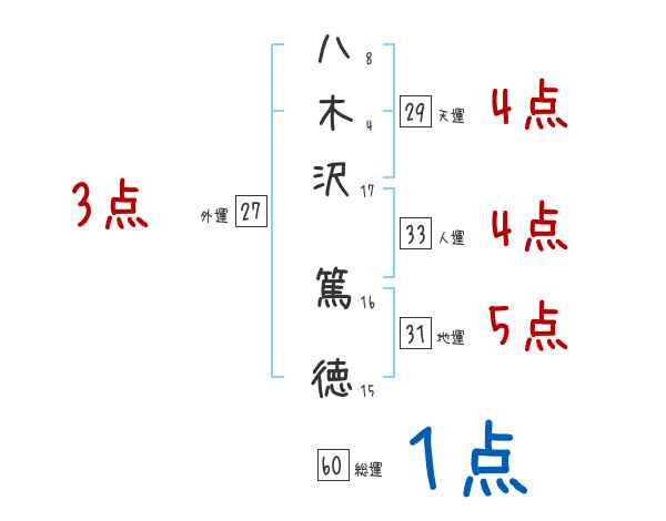 八木沢篤徳さんの画数の鑑定結果