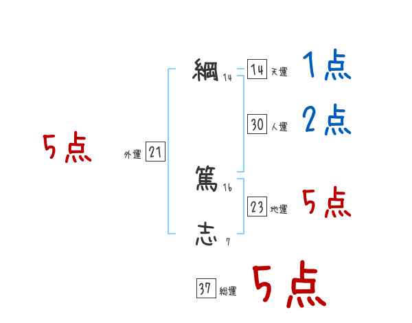 綱篤志さんの画数の鑑定結果