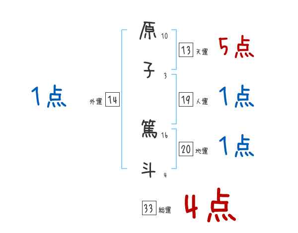 原子篤斗さんの画数の鑑定結果