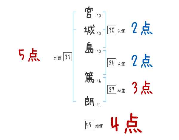 宮城島篤朗さんの画数の鑑定結果