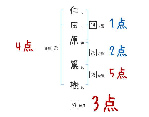 地運![]() | 仁田原篤樹さんの地運は32画の5つ星!柔軟性があり成功する。チャンスが多く金運が良い。 個性を表す基礎的な運勢です。性格形成や対人関係、行動力など家庭環境に影響されます。主に誕生してから20歳くらいまでの若年期の運勢を表します。 |
