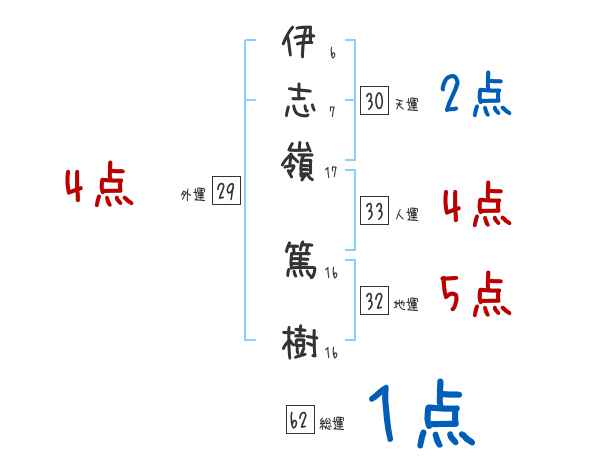 伊志嶺篤樹さんの画数の鑑定結果