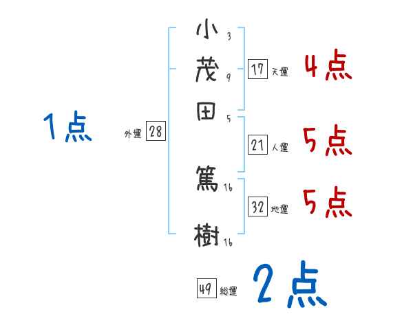 天運![]() | 小茂田篤樹さんの天運は17画の4つ星!積極的な行動力。地位を気づき財産を手に入れる。純粋な心と直感力。 家系が持つ宿命的な運勢を表します。祖先から受け継いだ苗字ですので自分の力が及びません。家柄を象徴します。 |
