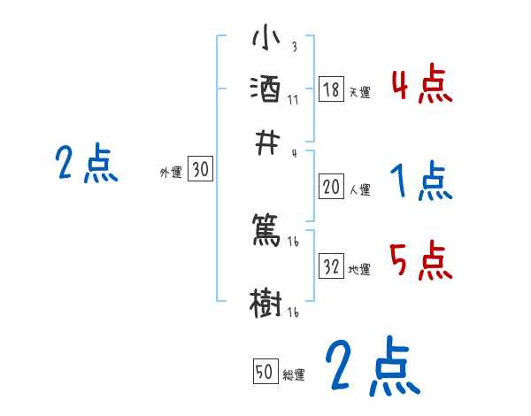 外運![]() | 小酒井篤樹さんの外運は30画の2つ星!浮き沈みの激しさに注意しましょう。 生活面を象徴する運勢です。外部から受ける影響力を表し、結婚運、家庭運や職場、環境への順応性を表します。 |