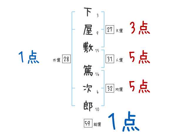 下屋敷篤次郎さんの画数の鑑定結果