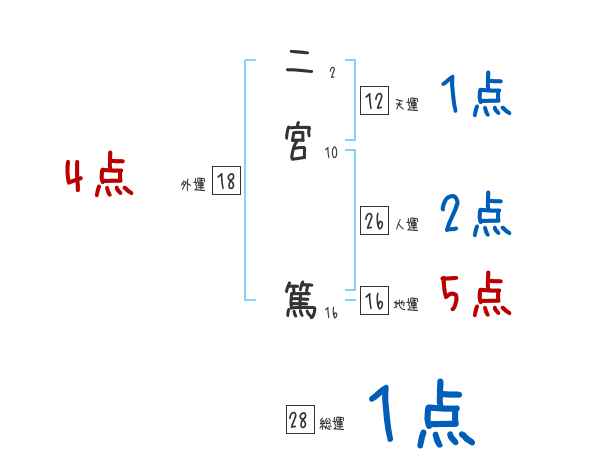 二宮篤さんの画数の鑑定結果