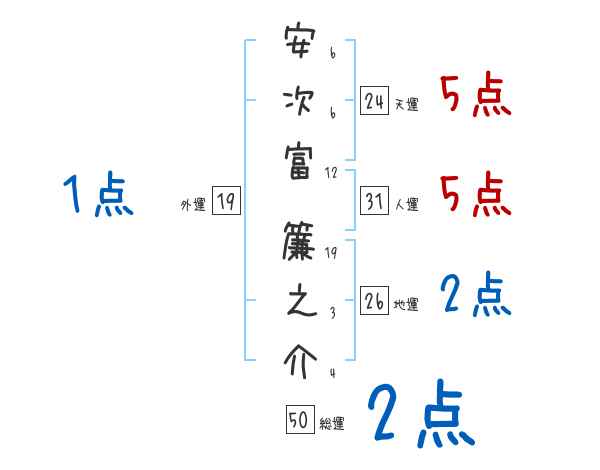 安次富簾之介さんの画数の鑑定結果