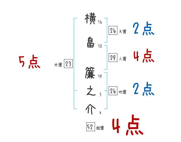 横畠簾之介さんの画数の鑑定結果