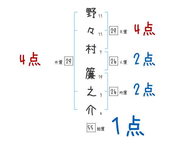 野々村簾之介さんの画数の鑑定結果