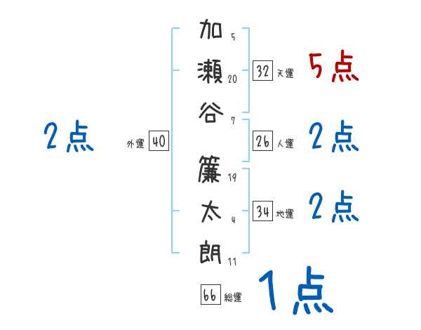 加瀬谷簾太朗さんの画数の鑑定結果