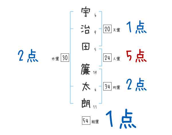 宇治田簾太朗さんの画数の鑑定結果