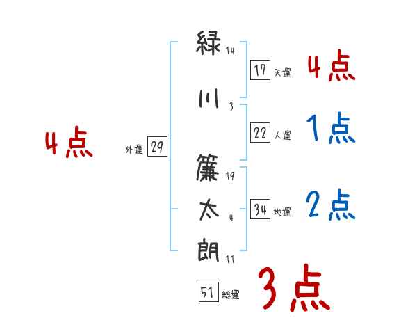 緑川簾太朗さんの画数の鑑定結果