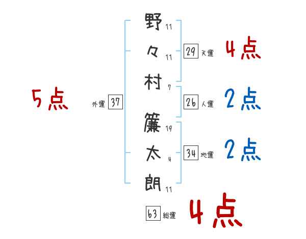 野々村簾太朗さんの画数の鑑定結果