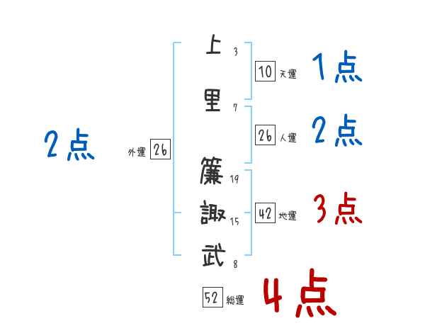 天運![]() | 上里簾諏武さんの天運は10画の1つ星!不安を感じやすい傾向。ストレスを抱えないように注意しましょう。 家系が持つ宿命的な運勢を表します。祖先から受け継いだ苗字ですので自分の力が及びません。家柄を象徴します。 |