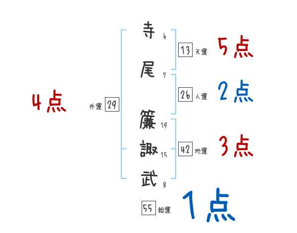 寺尾簾諏武さんの画数の鑑定結果