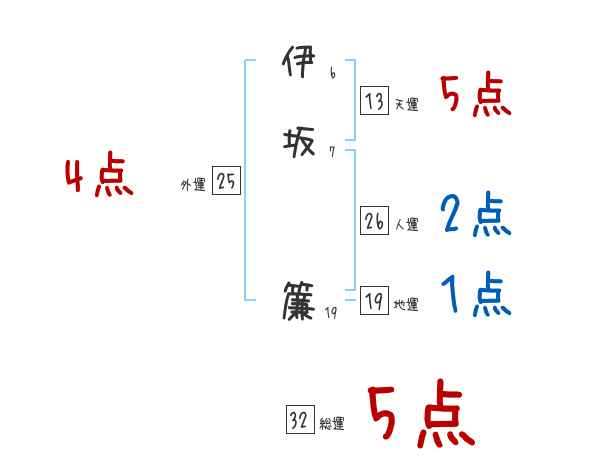 伊坂簾さんの画数の鑑定結果