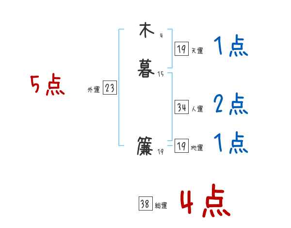 木暮簾さんの画数の鑑定結果