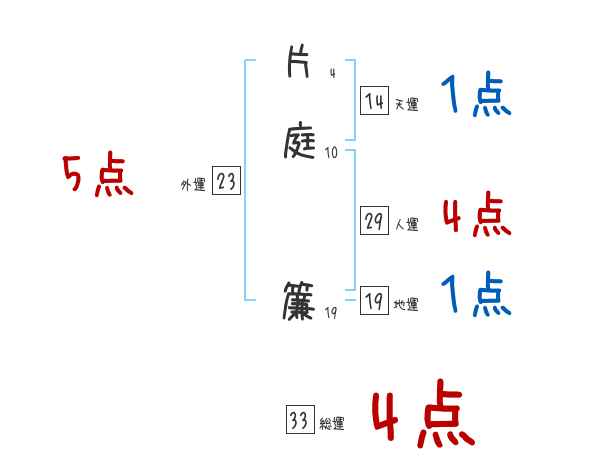 片庭簾さんの画数の鑑定結果