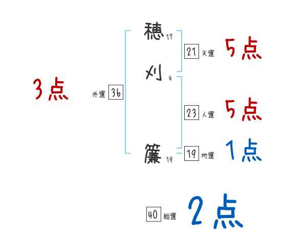 天運![]() | 穂刈簾さんの天運は21画の5つ星!統率力がある。独立し成功する。名誉を手に入れる。 家系が持つ宿命的な運勢を表します。祖先から受け継いだ苗字ですので自分の力が及びません。家柄を象徴します。 |