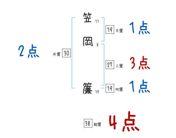 笠岡簾さんの画数の鑑定結果