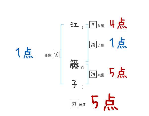 江籐子さんの画数の鑑定結果