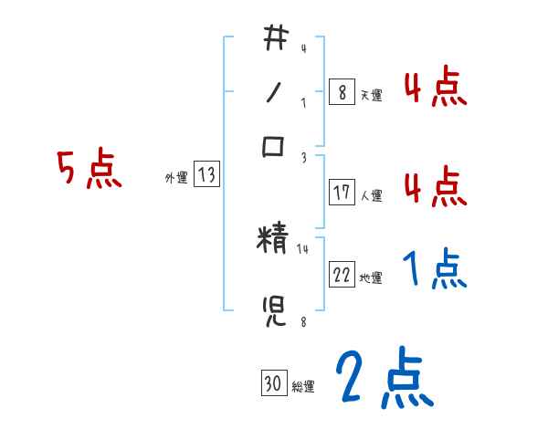 総運![]() | 井ノ口精児さんの総運は30画の2つ星!浮き沈みの激しさに注意しましょう。 あなたの人生を表す1番重要な運勢です。生涯を通じて影響する総合運となり、主に50歳以降の晩年期に影響を及ぼします。 |