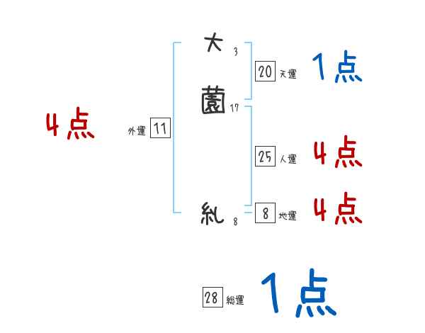 大薗糺さんの画数の鑑定結果