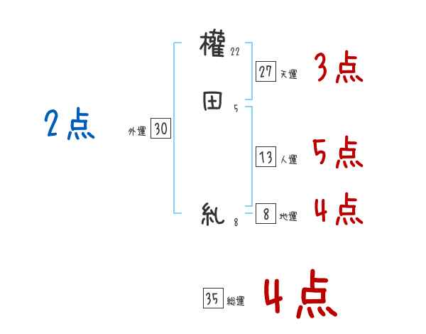 外運![]() | 權田糺さんの外運は30画の2つ星!浮き沈みの激しさに注意しましょう。 生活面を象徴する運勢です。外部から受ける影響力を表し、結婚運、家庭運や職場、環境への順応性を表します。 |