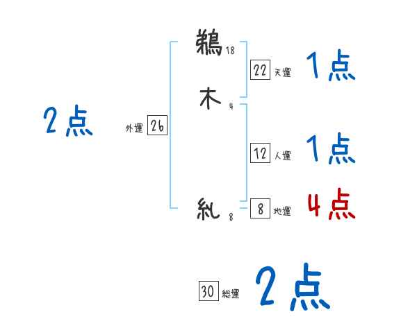 天運![]() | 鵜木糺さんの天運は22画の1つ星!努力することが苦手ないっぽう手先が器用。芸術性にも優れる。 家系が持つ宿命的な運勢を表します。祖先から受け継いだ苗字ですので自分の力が及びません。家柄を象徴します。 |
