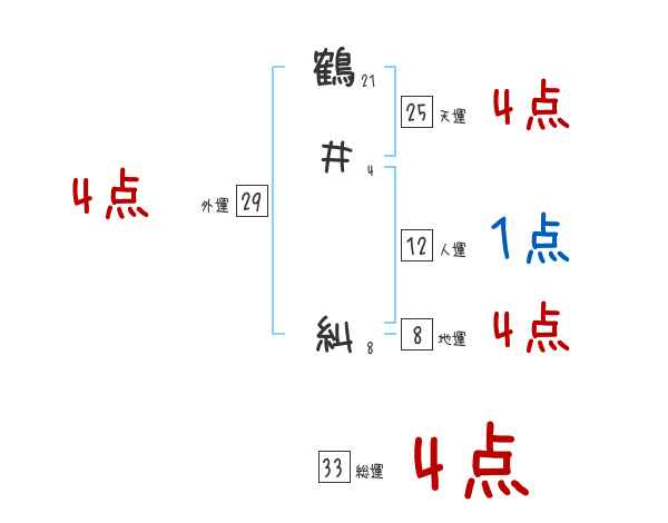 鶴井糾さんの画数の鑑定結果