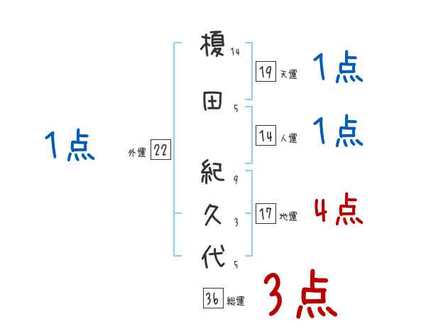 総運![]() | 榎田紀久代さんの総運は36画の3つ星!先見性が豊かです。多少神経質で苦労することも。 あなたの人生を表す1番重要な運勢です。生涯を通じて影響する総合運となり、主に50歳以降の晩年期に影響を及ぼします。 |