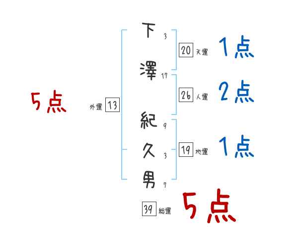 下澤紀久男さんの画数の鑑定結果
