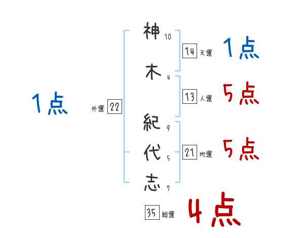 天運![]() | 神木紀代志さんの天運は14画の1つ星!人に対して優しいがストレスを溜め込みがち。人間関係のトラブルを避けるよう気をつけましょう。 家系が持つ宿命的な運勢を表します。祖先から受け継いだ苗字ですので自分の力が及びません。家柄を象徴します。 |