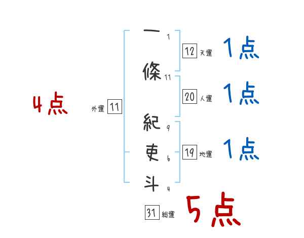 一條紀吏斗さんの外運は11画の4つ星