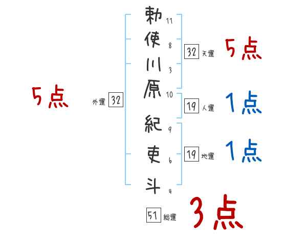 勅使川原紀吏斗さんの画数の鑑定結果