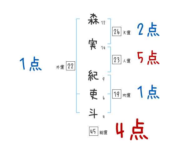 森実紀吏斗さんの画数の鑑定結果