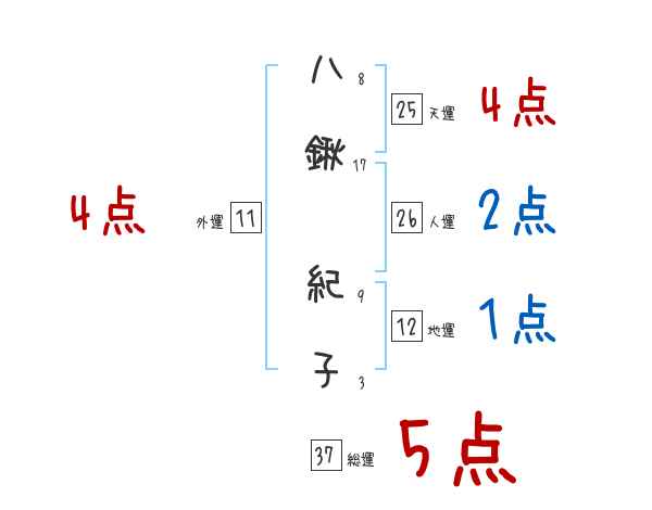 総運![]() | 八鍬紀子さんの総運は37画の5つ星!努力家で順応性に優れる。現実的な考え方ができ忠実に物事をこなす。 あなたの人生を表す1番重要な運勢です。生涯を通じて影響する総合運となり、主に50歳以降の晩年期に影響を及ぼします。 |